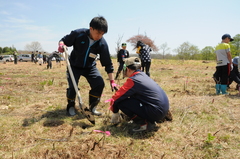 別寒辺牛川・ホマカイ川流域環境保全協議会、厚岸町民の森造成実行委員会主催のもと、535名が参加し、2,557本の植樹を行いました。