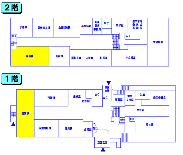 - 役場庁舎の管理課と建設課の配置が入れ替わります。