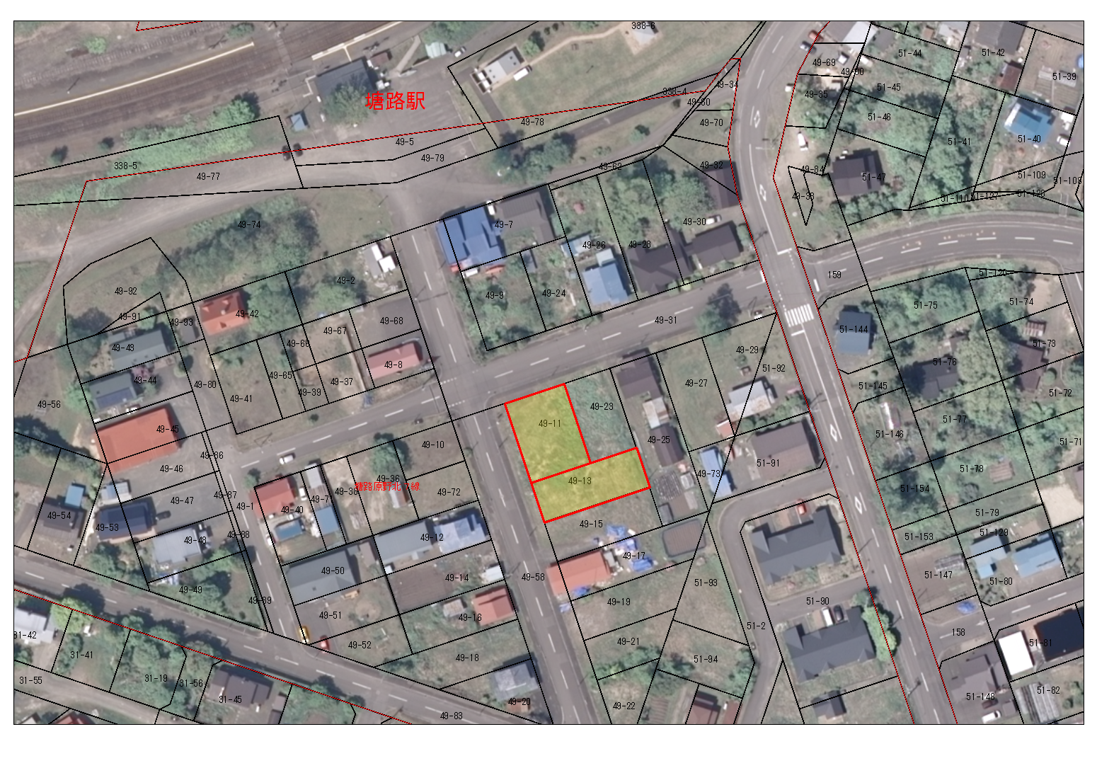 | 登記地目 | 宅地 | 面積 | 356.30㎡(49番11) 316.67㎡(49番13) |