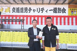 10月5日に、JAしべちゃ前の駐車場で、アートトラックグループ神威(会長 前田利幸)が主催し、全国からたくさんのアートトラックが集まり、撮影会やステージエベントなどが行われました。団体の活動の一部に社会福祉協力や交通遺児支援があるとの事で、開会式の中でチャリティーとして集められた一部をご寄付いただきました。
