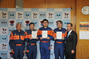 4月1日、標茶町役場で標茶消防団(団長 田中純一)から町職員3人に団員の辞令交付が行われました。標茶消防団員が不足するなかで、職員に協力を呼び掛けていたところ、3人の職員から参加協力がありました。役場の日常業務のほかに、消防団員としての新たな任務や日々の訓練などもありますが、今後の活躍を期待しております。町民の皆さんの安全・安心なまちづくりを目指し、引き続き減災・防災に努めて参ります。